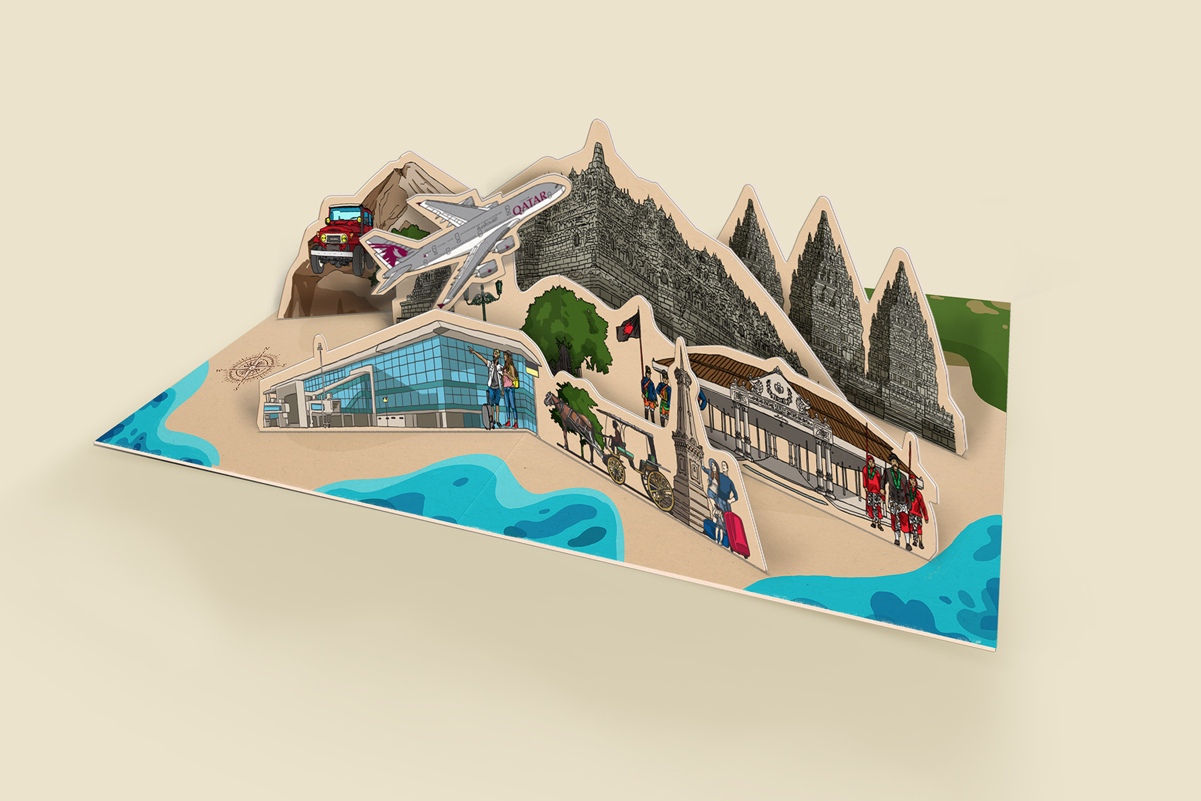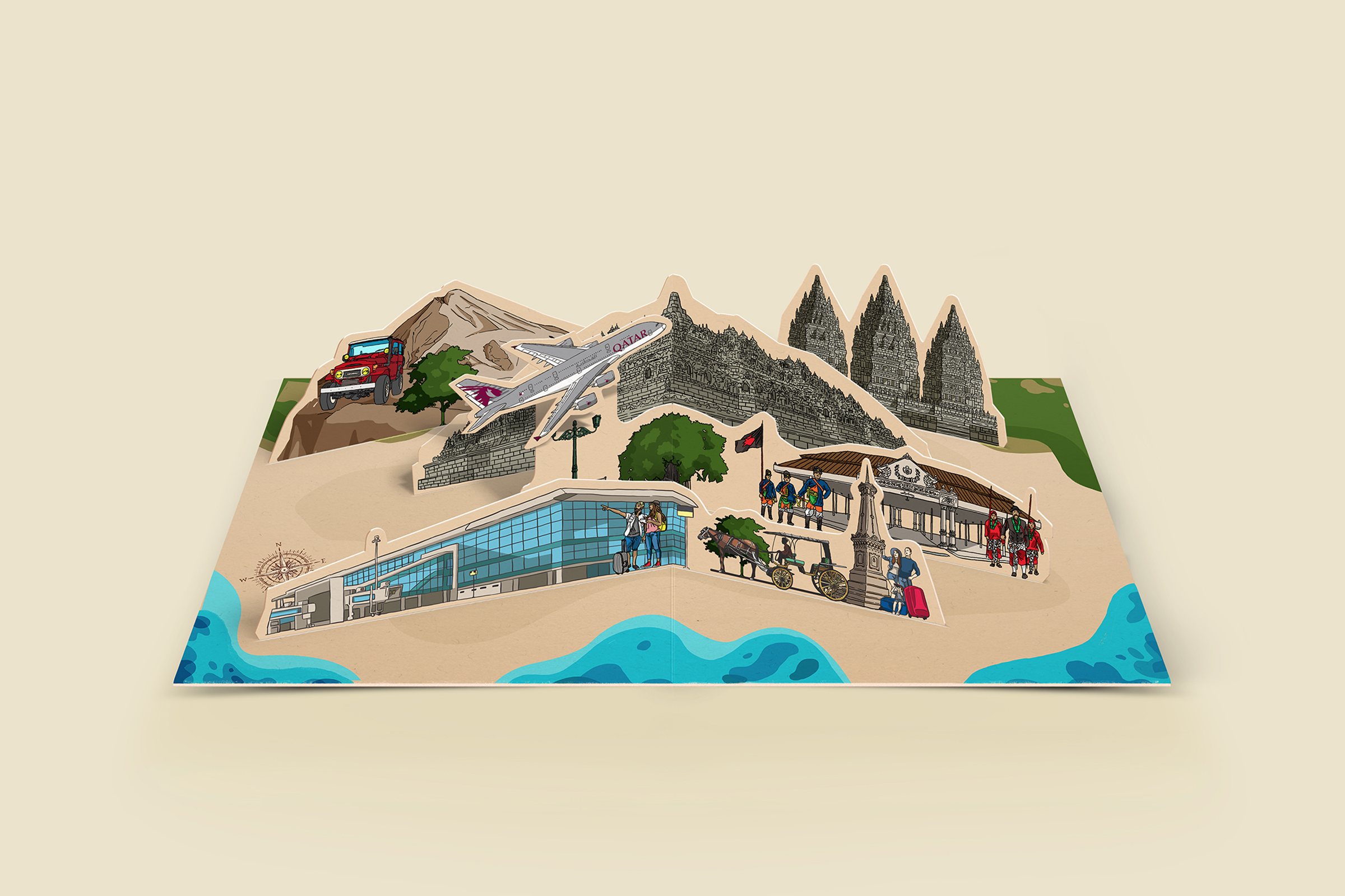 Crafted with pop-up illustration techniques, the design brought a dynamic and memorable visual experience, symbolizing both the airport’s modern identity and the welcoming spirit of Indonesia. This thoughtful creation not only marked the beginning of a new connection but also served as a lasting impression of Yogyakarta’s charm.